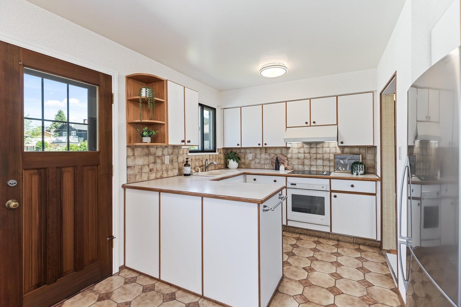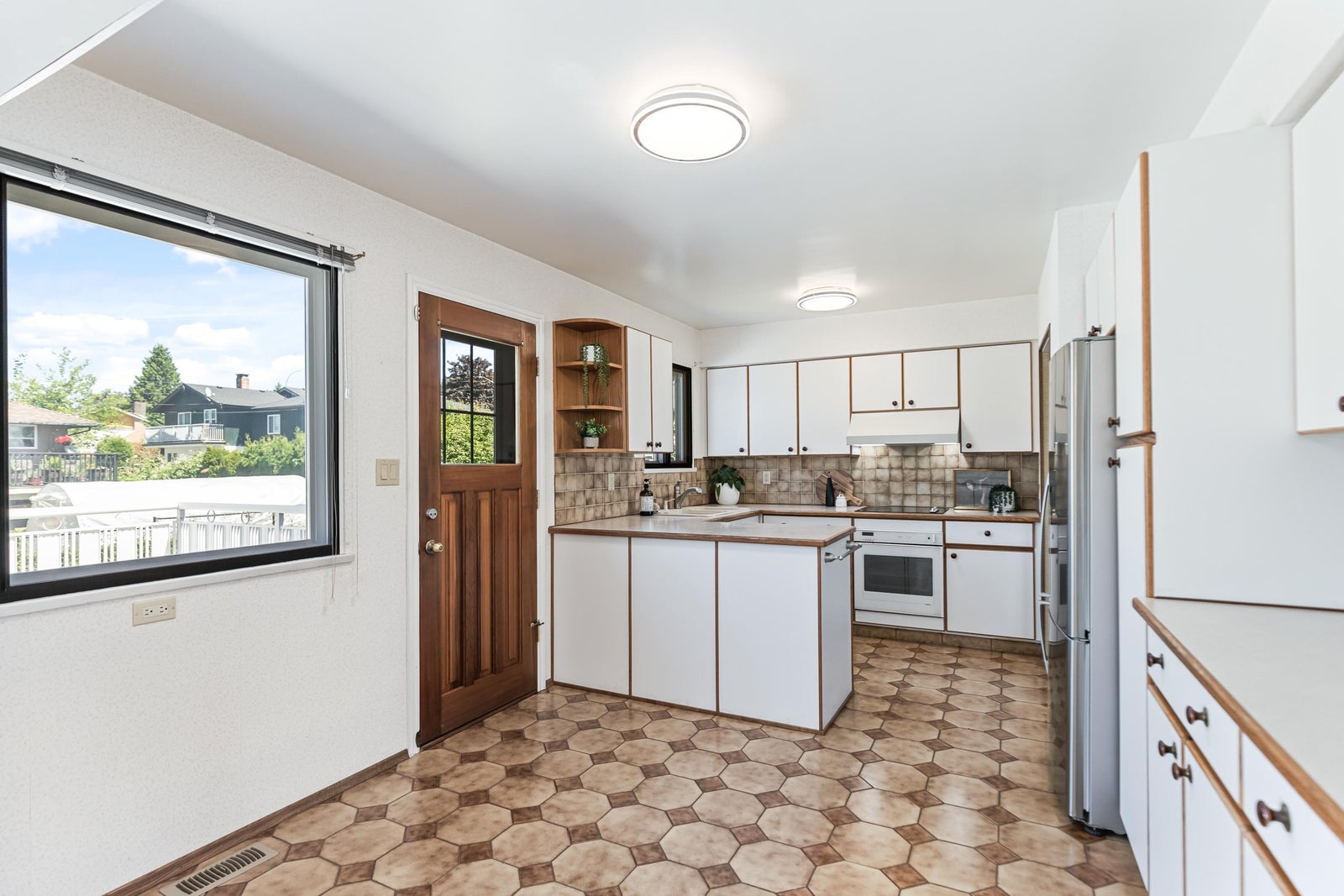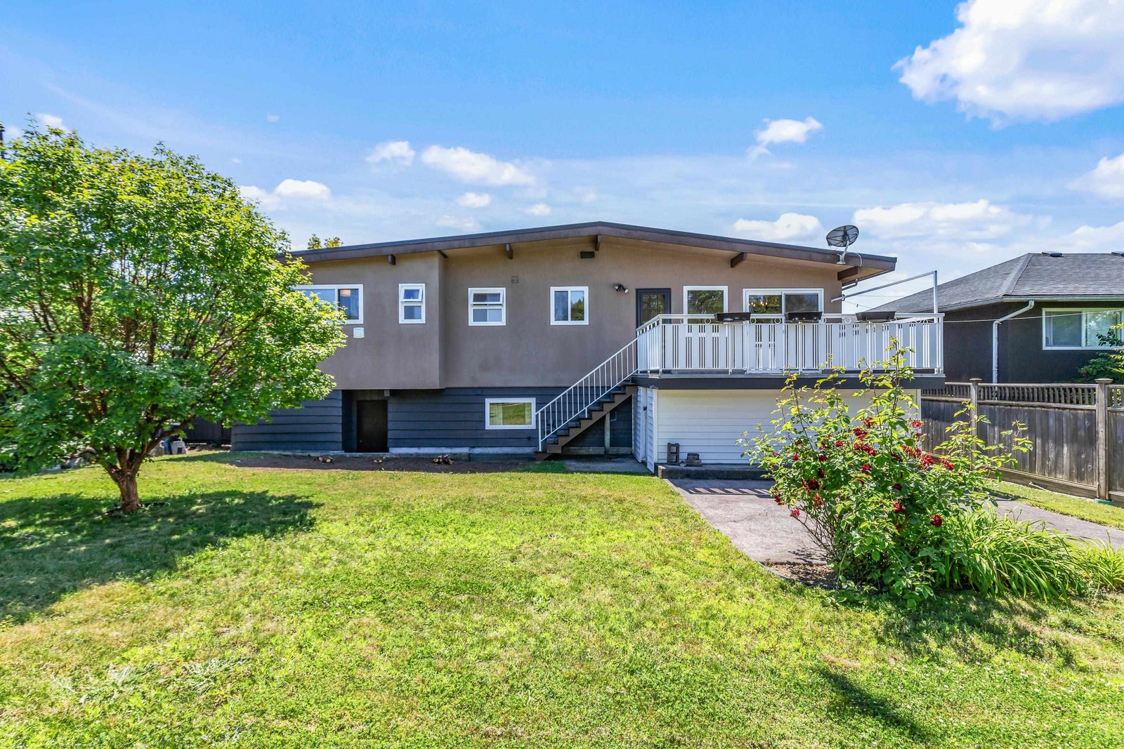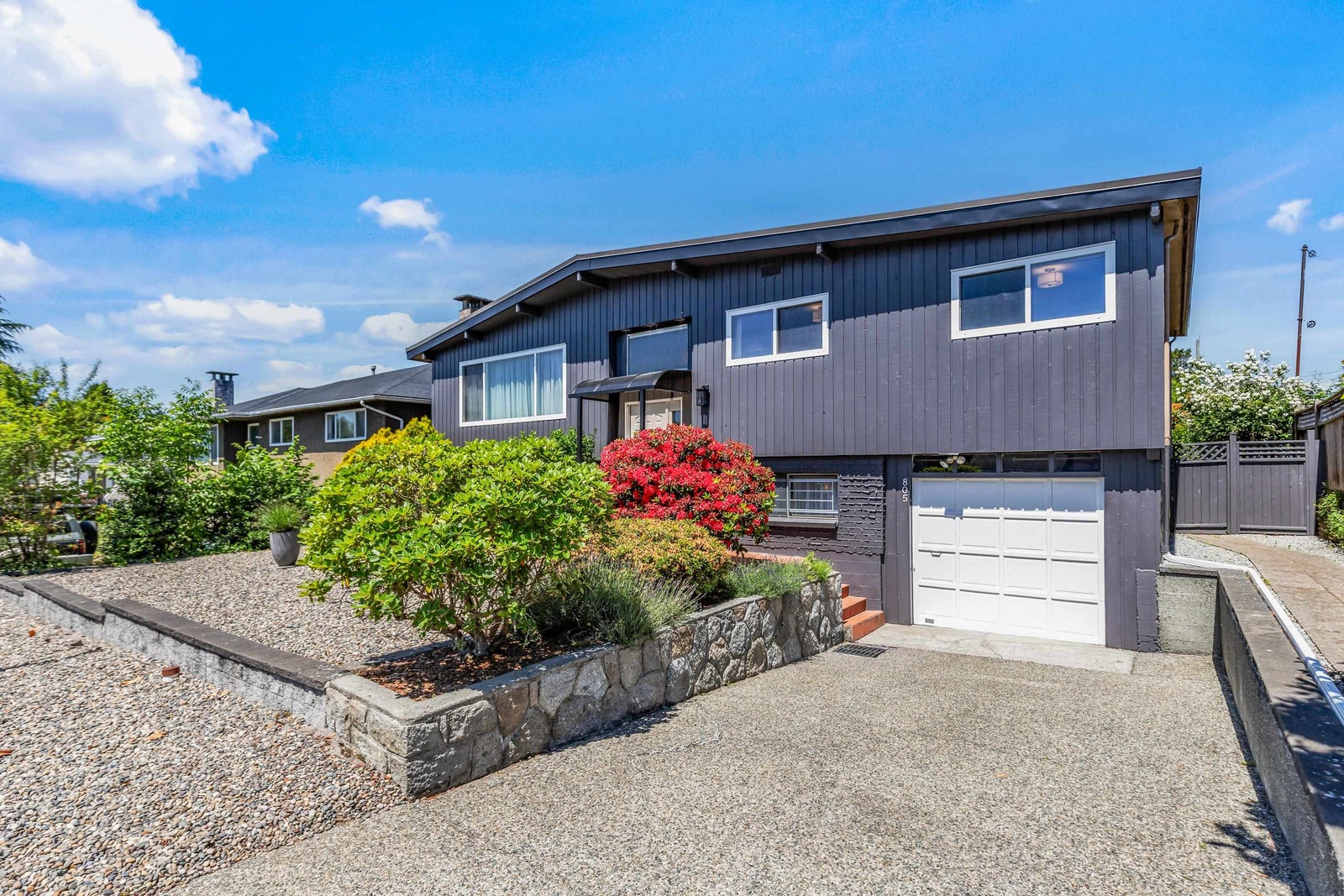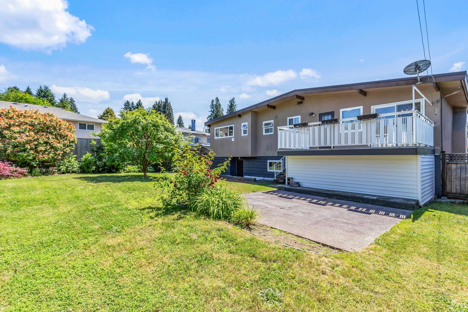 Move-in ready & full of natural light, this beautiful 4-bed, 3-bath home offers over 2,100 sq ft of comfortable living on a 6,000+sq ft R1-zoned lot in a quiet North Burnaby neighborhood. The main living room features VAULTED ceilings & large windows that fill the home w/ sunlight. Fresh interior & exterior paint, modern light fixtures, new carpet, & improved main floor flow create a warm & welcoming feel. Upstairs includes 3 spacious bedrooms & 2 bathrooms. The lower level offers a large rec room, guest bedroom, full bath & storage. The sunny, fully fenced backyard includes mature landscaping & space for kids, pets, or gardening. Walk to Westridge Elementary, parks, and transit. This is a well-maintained home in a great family friendly location. Book your private showing!