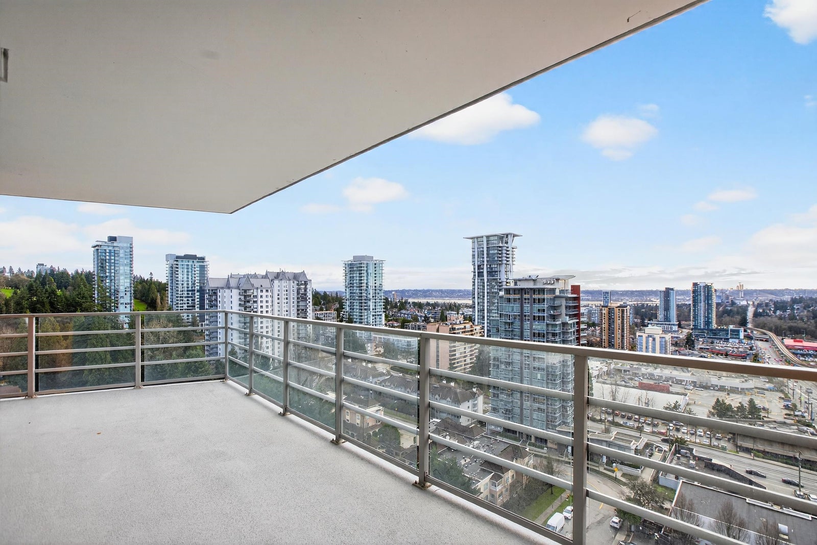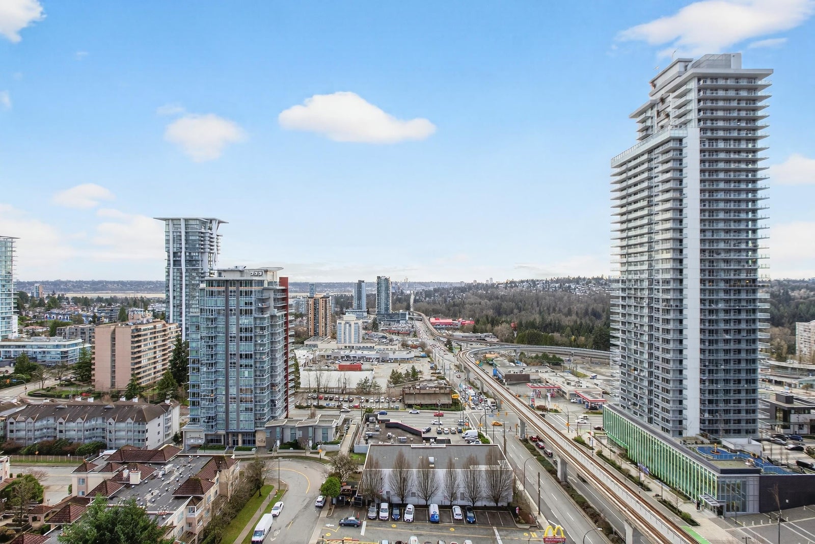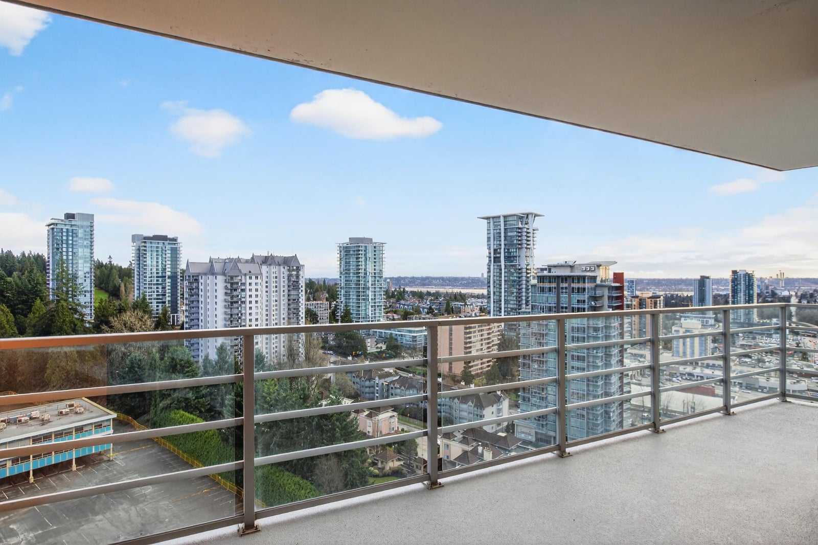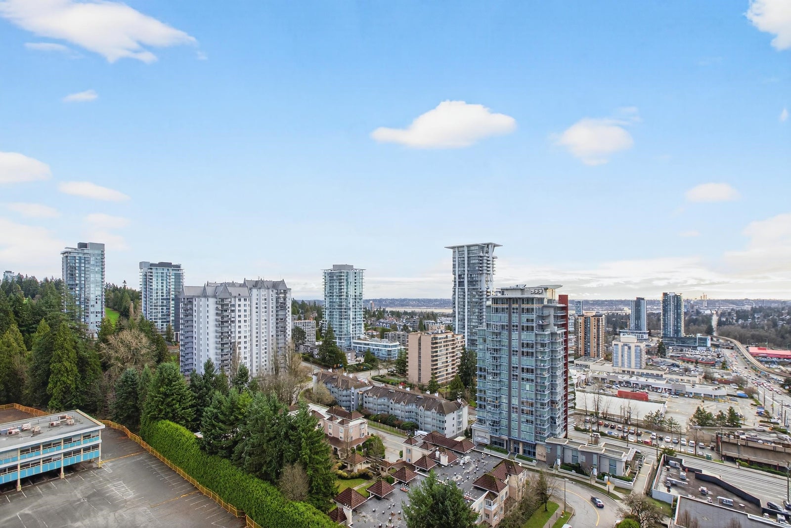 WOW, VIEWS FROM ALL ROOMS! Welcome to Brookmere Tower by Onni. This is a 3 bed, 2 bath, 988 sqft unit w/ an impressive 295 sqft SE facing deck on the 17th floor. Take in mountain, water & city views w/ a morning coffee or your evening downtime. Bright open layout w/ floor to ceiling windows, modern kitchen w/ quartz counters, gas cooktop, full-size S/S appliances & large peninsula for entertaining. Two clean, contemporary bathrooms & walk through closet. Resort style amenities include gym, yoga room, theatre, games room, lounge, party room, guest suites, BBQ area, playground & community garden. Steps to SkyTrain, shops & restaurants. Includes 1 parking and 1 locker. Easy to show, contact for your private showing! OPEN HOUSE Sun April 12th 1-3pm