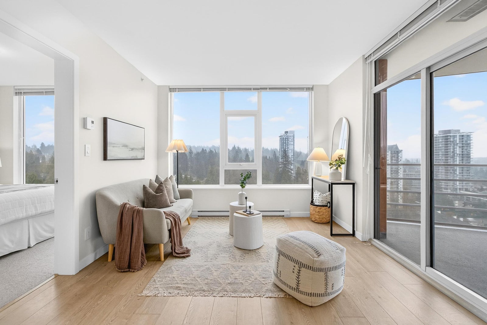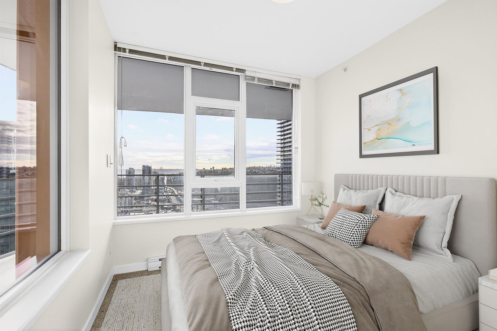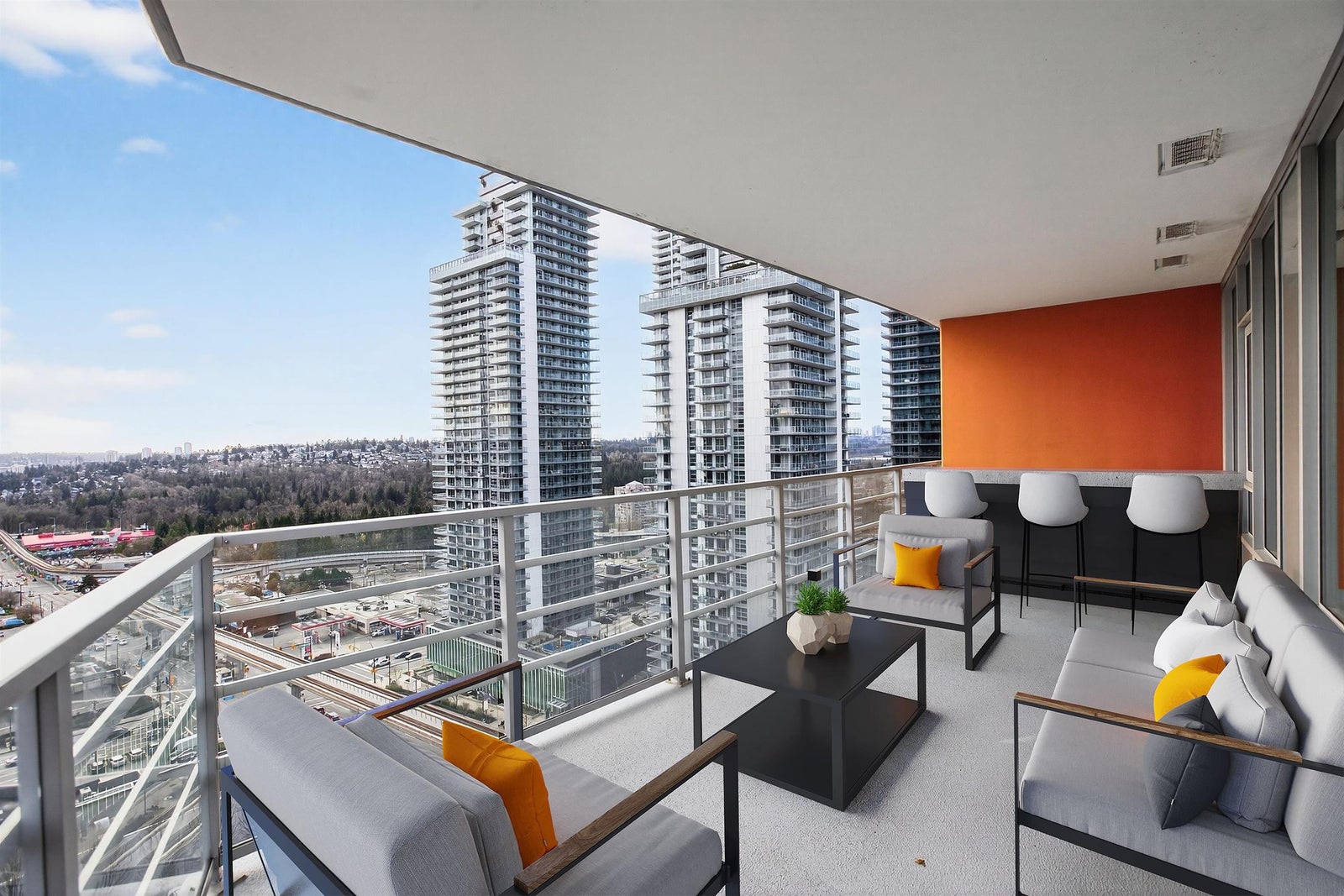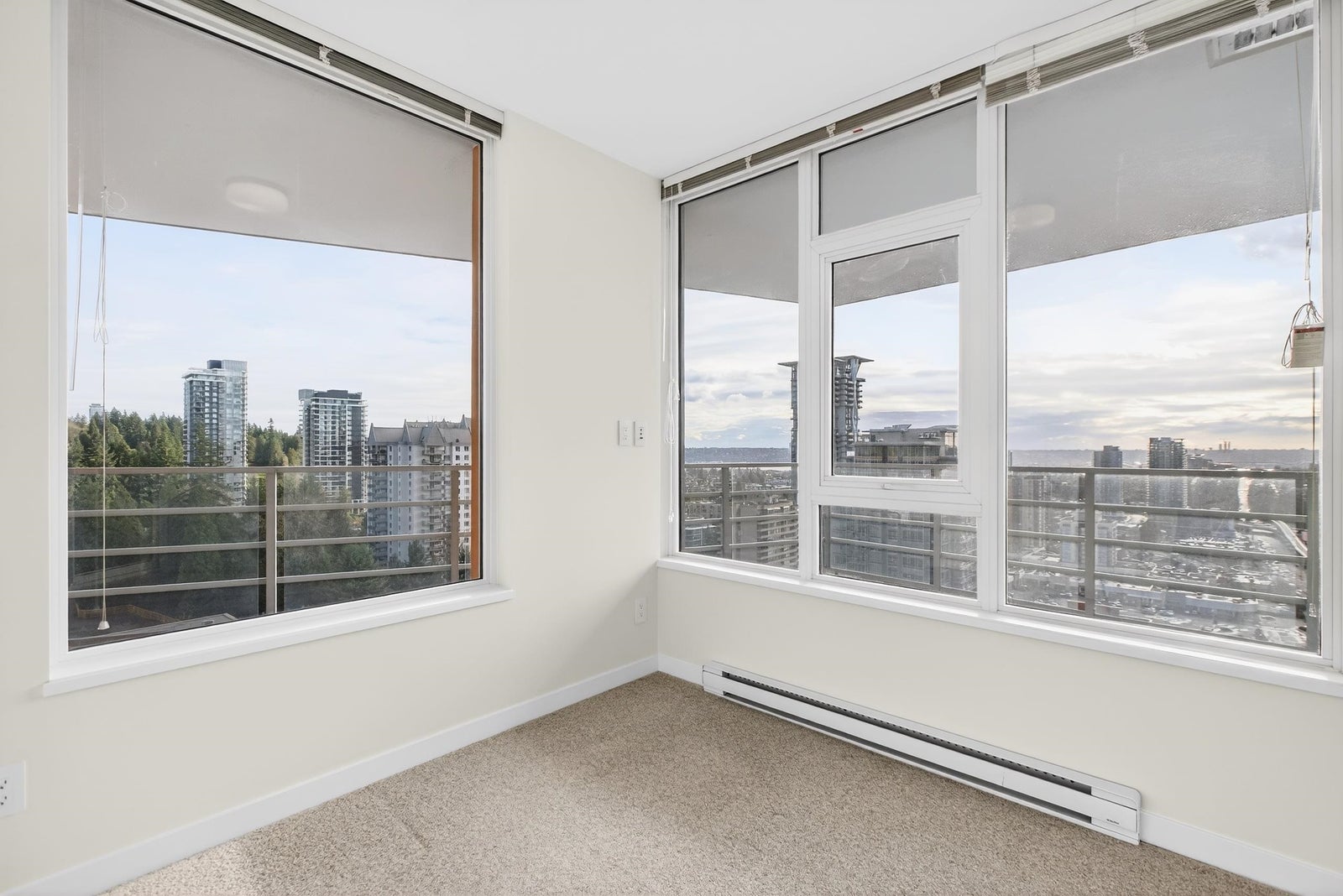 WOW, VIEWS FROM ALL ROOMS! Welcome to Brookmere Tower by Onni. This is a 3 bed, 2 bath, 988 sqft unit w/ an impressive 295 sqft SE facing deck on the 17th floor. Take in mountain, water & city views w/ a morning coffee or your evening downtime. Bright open layout w/ floor to ceiling windows, modern kitchen w/ quartz counters, gas cooktop, full-size S/S appliances & large peninsula for entertaining. Two clean, contemporary bathrooms & walk through closet. Resort style amenities include gym, yoga room, theatre, games room, lounge, party room, guest suites, BBQ area, playground & community garden. Steps to SkyTrain, shops & restaurants. Includes 1 parking and 1 locker. Easy to show, contact for your private showing! OPEN HOUSE Sun April 12th 1-3pm