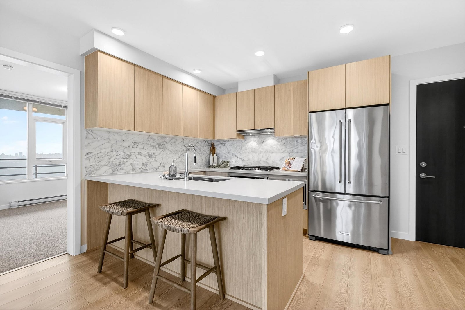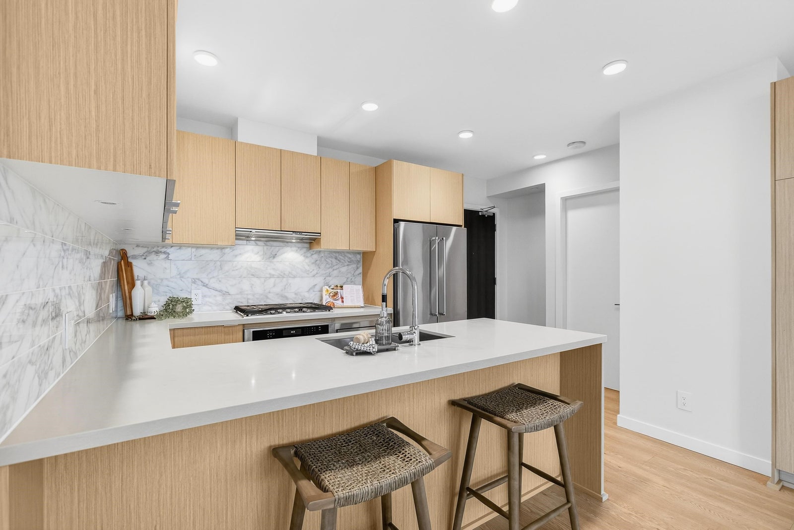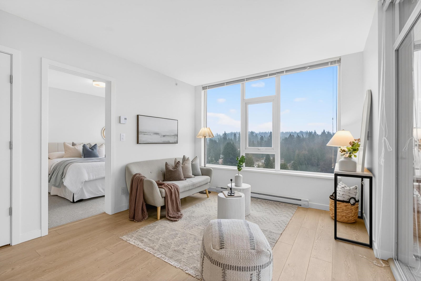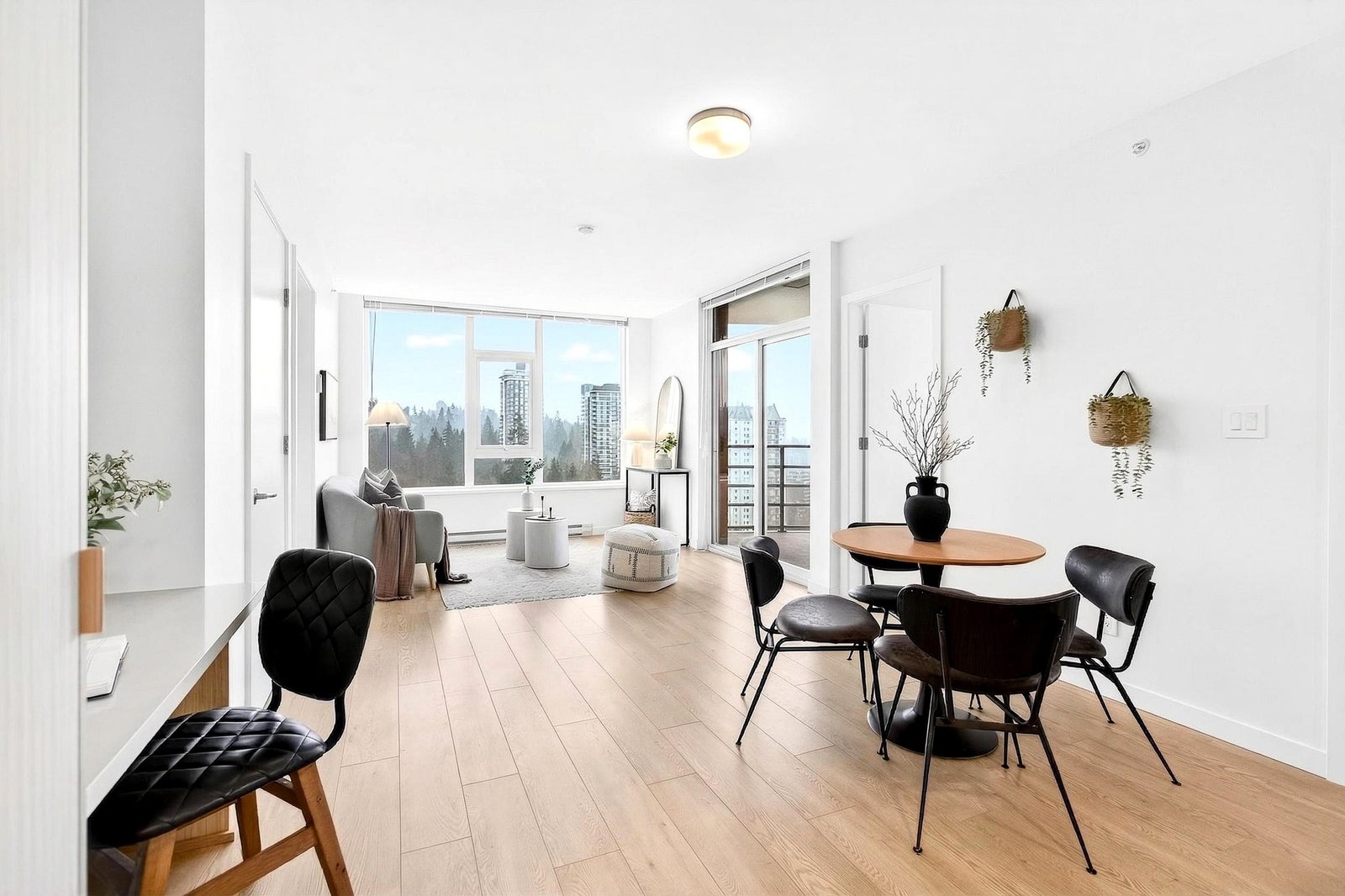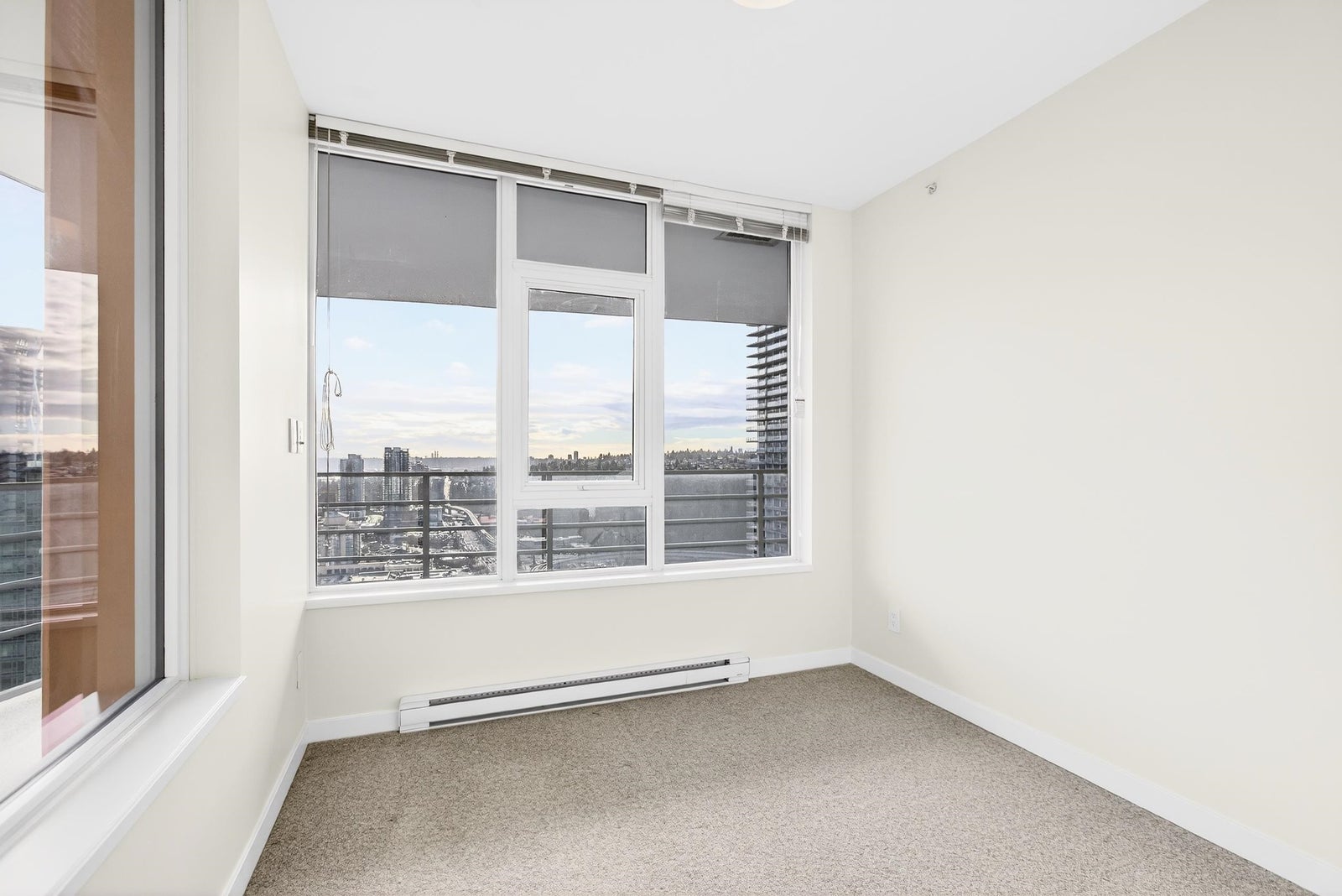 WOW, VIEWS FROM ALL ROOMS! Welcome to Brookmere Tower by Onni. This is a 3 bed, 2 bath, 988 sqft unit w/ an impressive 295 sqft SE facing deck on the 17th floor. Take in mountain, water & city views w/ a morning coffee or your evening downtime. Bright open layout w/ floor to ceiling windows, modern kitchen w/ quartz counters, gas cooktop, full-size S/S appliances & large peninsula for entertaining. Two clean, contemporary bathrooms & walk through closet. Resort style amenities include gym, yoga room, theatre, games room, lounge, party room, guest suites, BBQ area, playground & community garden. Steps to SkyTrain, shops & restaurants. Includes 1 parking and 1 locker. Easy to show, contact for your private showing! OPEN HOUSE Sun April 12th 1-3pm