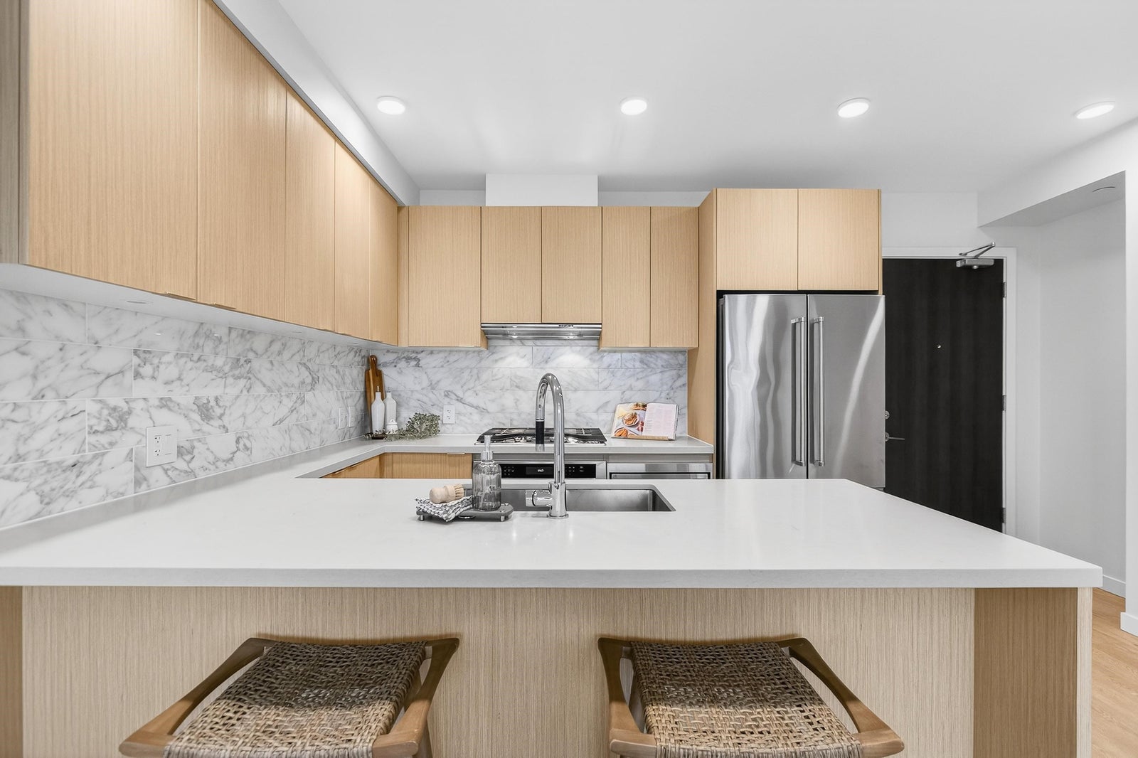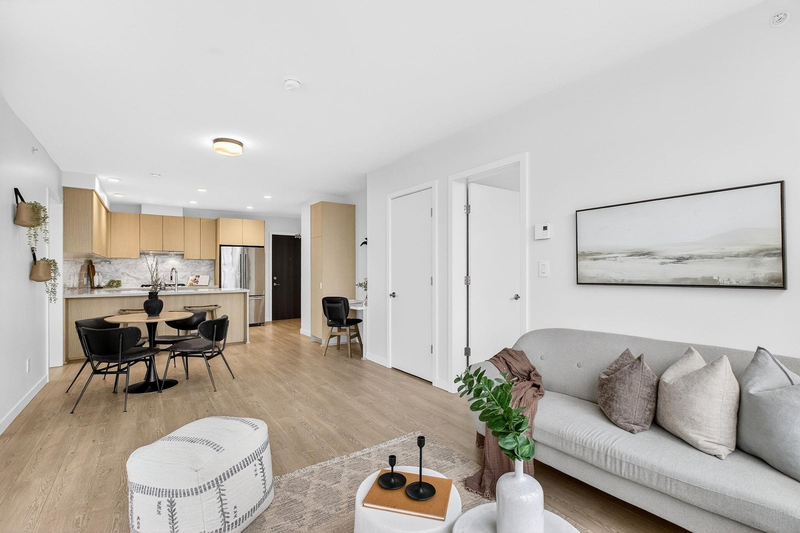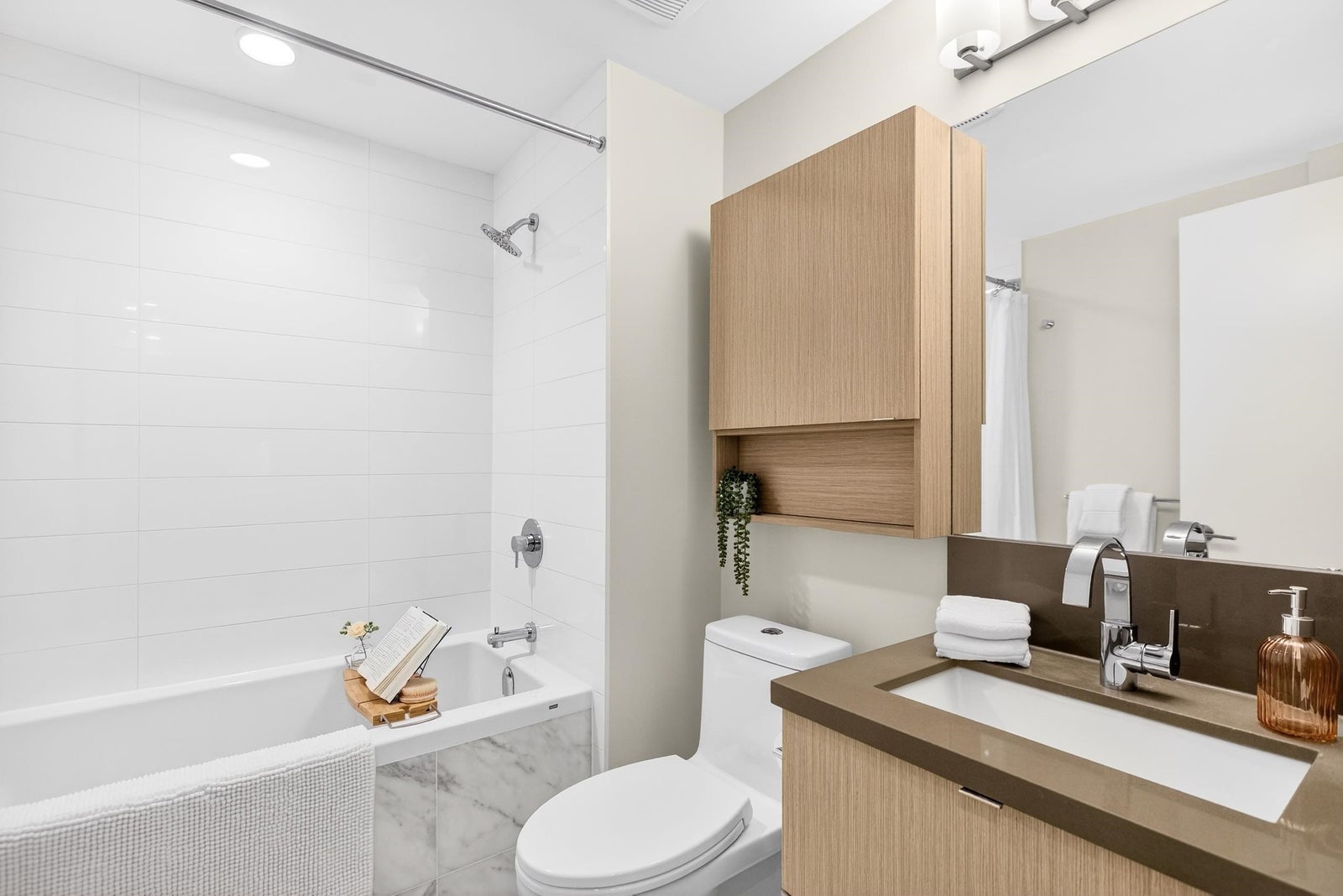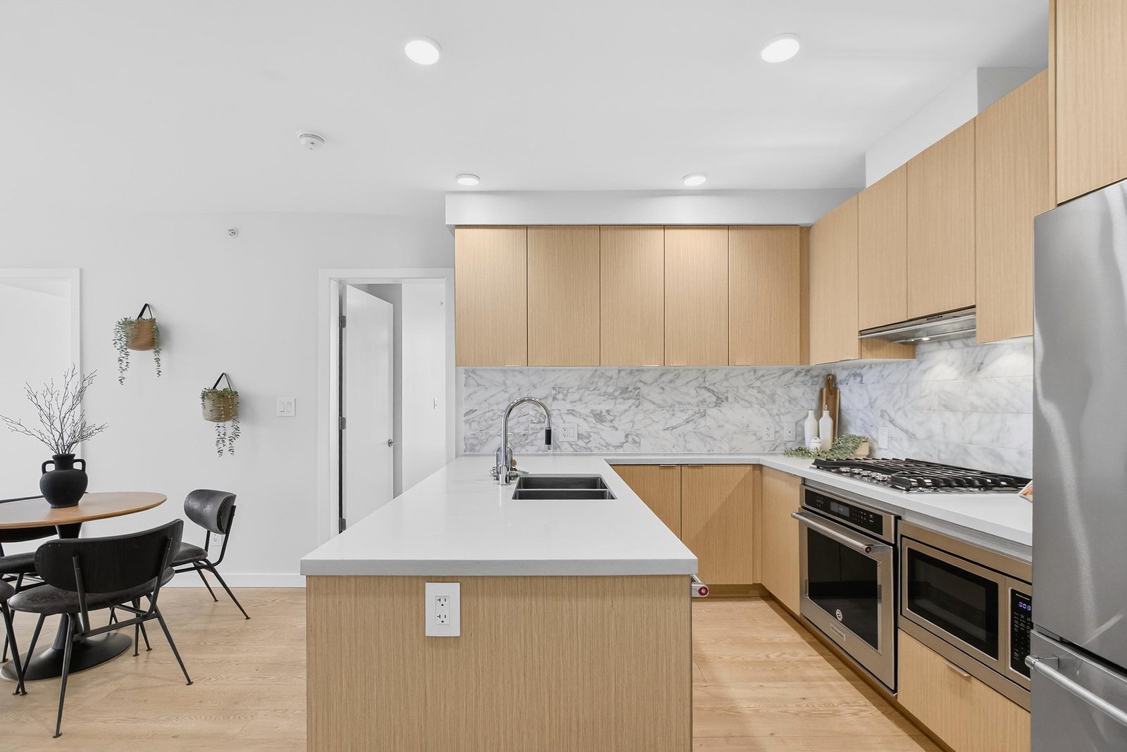WOW, VIEWS FROM ALL ROOMS! Welcome to Brookmere Tower by Onni. This is a 3 bed, 2 bath, 988 sqft unit w/ an impressive 295 sqft SE facing deck on the 17th floor. Take in mountain, water & city views w/ a morning coffee or your evening downtime. Bright open layout w/ floor to ceiling windows, modern kitchen w/ quartz counters, gas cooktop, full-size S/S appliances & large peninsula for entertaining. Two clean, contemporary bathrooms & walk through closet. Resort style amenities include gym, yoga room, theatre, games room, lounge, party room, guest suites, BBQ area, playground & community garden. Steps to SkyTrain, shops & restaurants. Includes 1 parking and 1 locker. Easy to show, contact for your private showing! OPEN HOUSE Sun April 12th 1-3pm